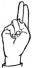 На ћирилици написано МАРКО ГОДОЧЕВИЋ састоји се из 14 слова [?]. Исписано ћириличном једноручном азбуком за глувонеме: